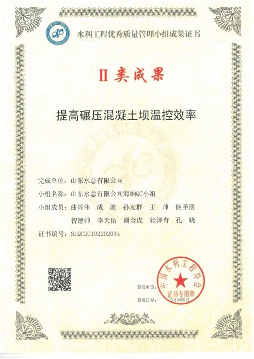 2019年9月24日,由中国水利工程协会举办的2019年度中国水利工程优秀质量管理小组成果发布,betway88西汉姆联报送的《提高碾压混凝土坝温控效率》和《提高预制空心板气囊安装一次成型合格率》2项成果全部获Ⅱ类成果奖。