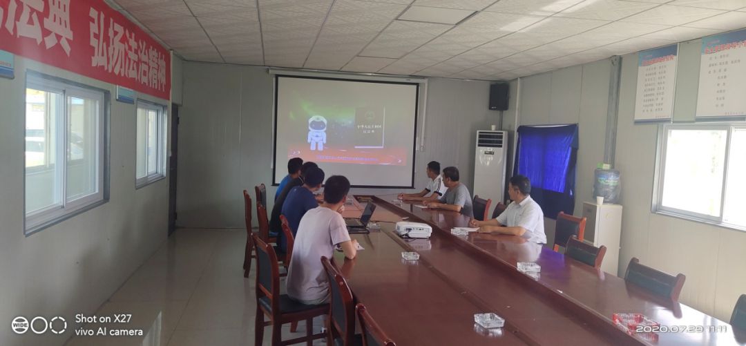 全体项目部管理人员及现场施工班组长参加了宣贯会议,会议上对《民法典》的学习要求进行宣贯及解读。会上,参会人员共同学习了新民法。以投影仪投放及微信转发的形式进行了系统的学习,通过这次集体学习提高了项目部全体人员的法治意识。