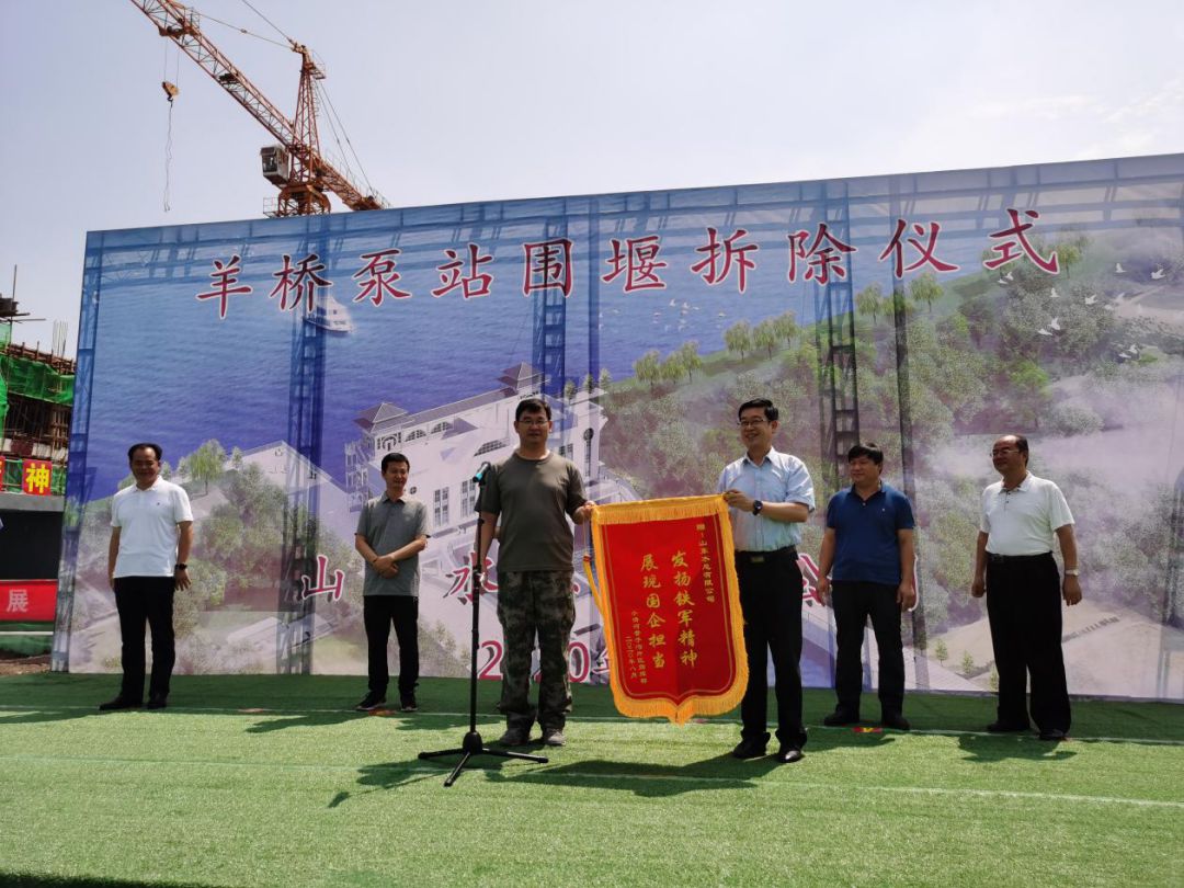 羊桥泵站闸门完全具备了启闭功能,水泵具备了排水功能,围堰的拆除标志着羊桥泵站的正式启用,为今年防汛防潮排涝提供了工程保障,对保证羊口镇人民生命财产安全具有重要意义。仪式上,王法顺部长代表工程指挥部给公司授予了锦旗,表达了对公司领导及参建职工的感谢,赞扬了betway88西汉姆联人自强不息、勇于超越的铁军精神。