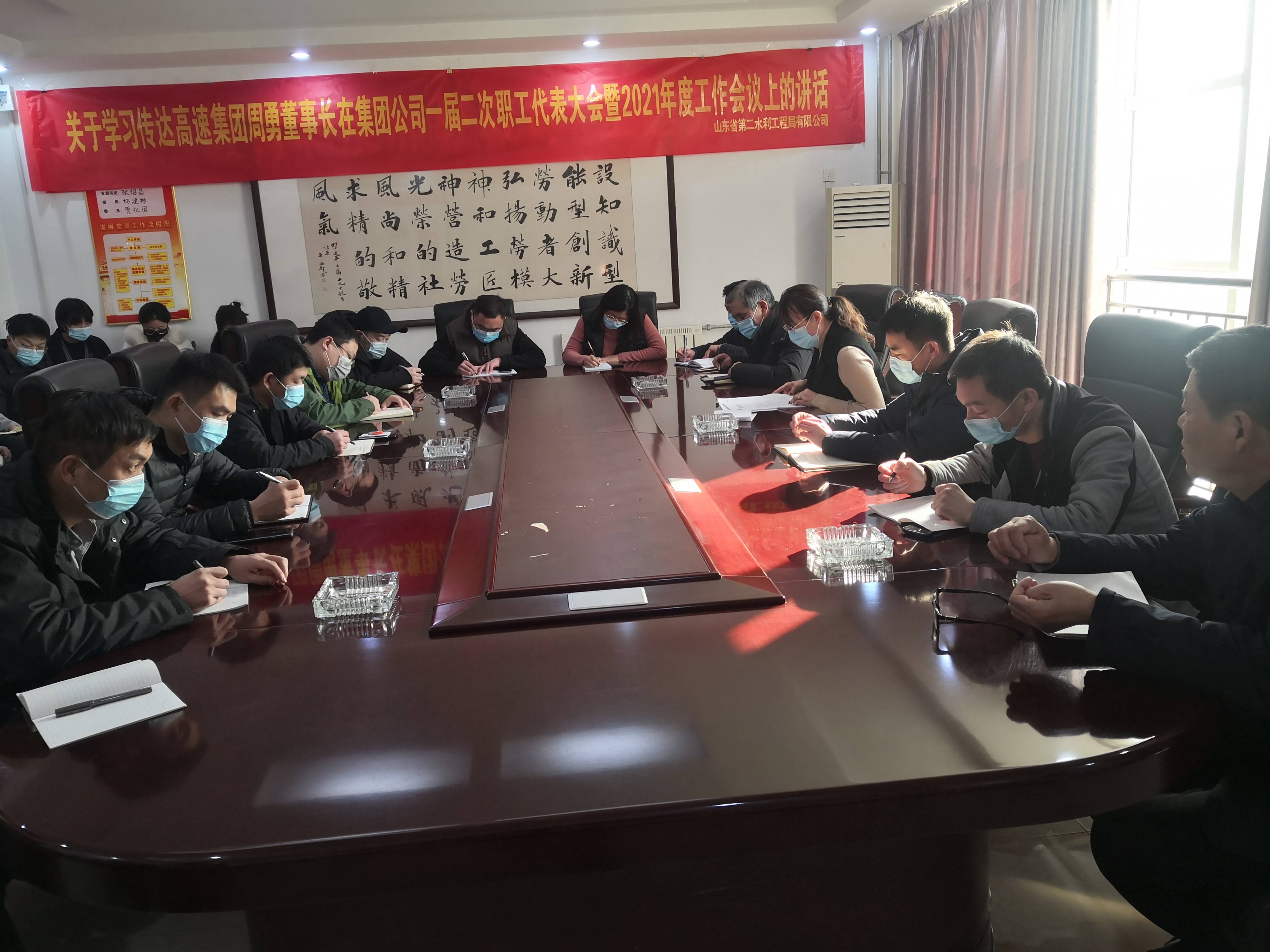 2021年2月8日,山东省第二水利工程局有限公司召集机关各科室、各项目人员组织开展学习贯彻集团党委书记、董事长周勇在集团公司一届二次职工(会员)代表大会暨2021年度工作会议上的重要讲话。
