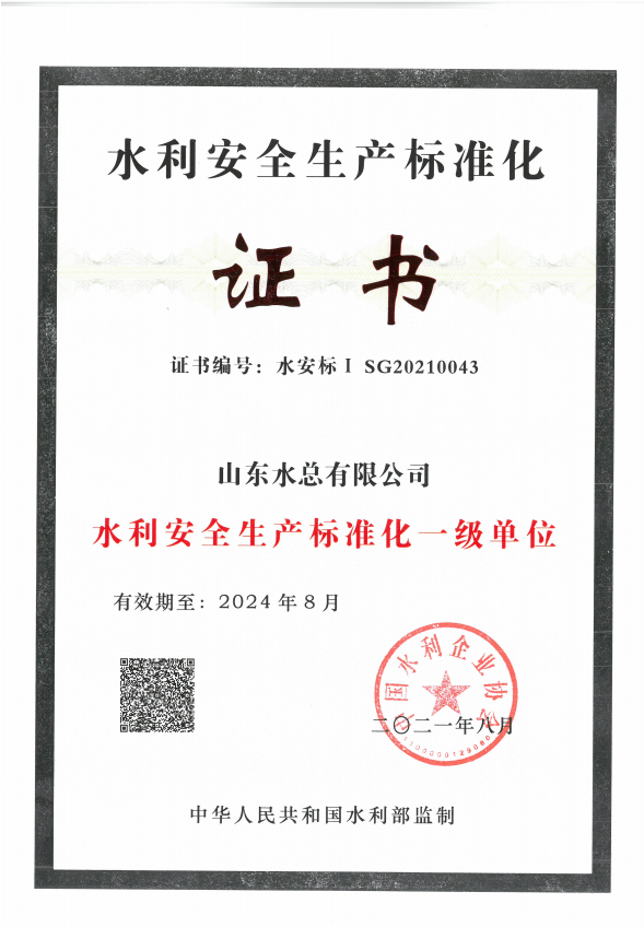 在公司领导的大力支持及各部门共同配合协作下,我公司于近日顺利通过了水利安全生产标准化评审委员会评审,被评为水利安全标准化一级达标企业。