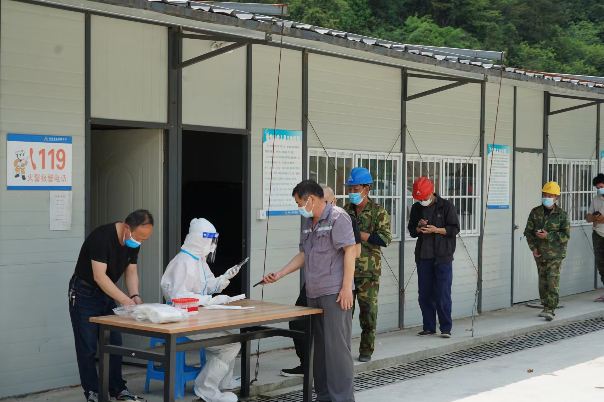 当前,全国疫情呈现反弹态势,疫情防控形势异常严峻。为有效管控疫情传播风险,落实疫情防控主体责任,4月12日,杭州鲁润公司邀请项目驻地清凉峰镇卫生院医护人员,到双溪口水库项目部对全体参建人员进行核酸检测,确保应检尽检、全员覆盖,筑牢建筑工地疫情防控安全网。医护人员来工程现场核酸检测,不仅免去了项目人员到医院排队的不便,更大程度的节约了时间,避免影响正常施工。