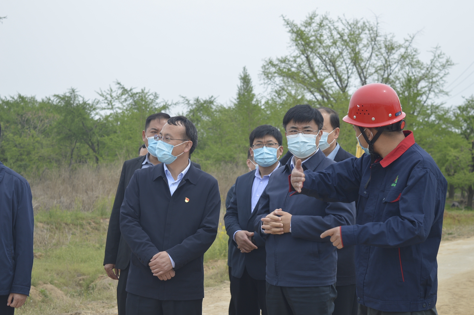 4月14日,临沂郯城县县委书记王立军一行到山东betway88西汉姆联第三分公司承建的重坊橡胶坝工程视察指导工作。通过项目经理王庆捷的工作汇报,王立军详细了解了项目部疫情防控、复工复产情况以及当前工程面临的重点难点问题。