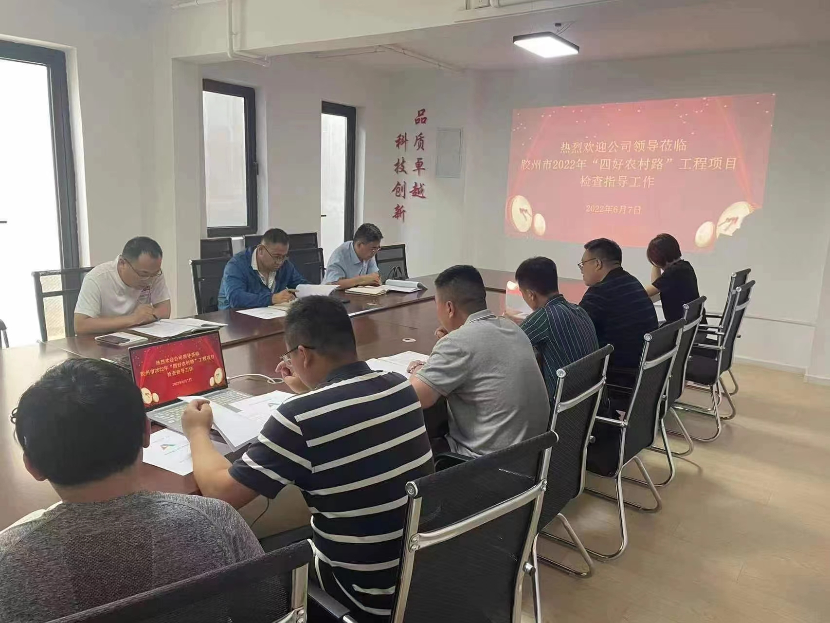 6月7日,公司安全总监郭法文、安全管理部部长向建等一行到胶州市2022年“四好农村路”工程项目开展安全检查工作,二局有限公司副总经理、安全总监刘波,副总经理李灏陪同检查。