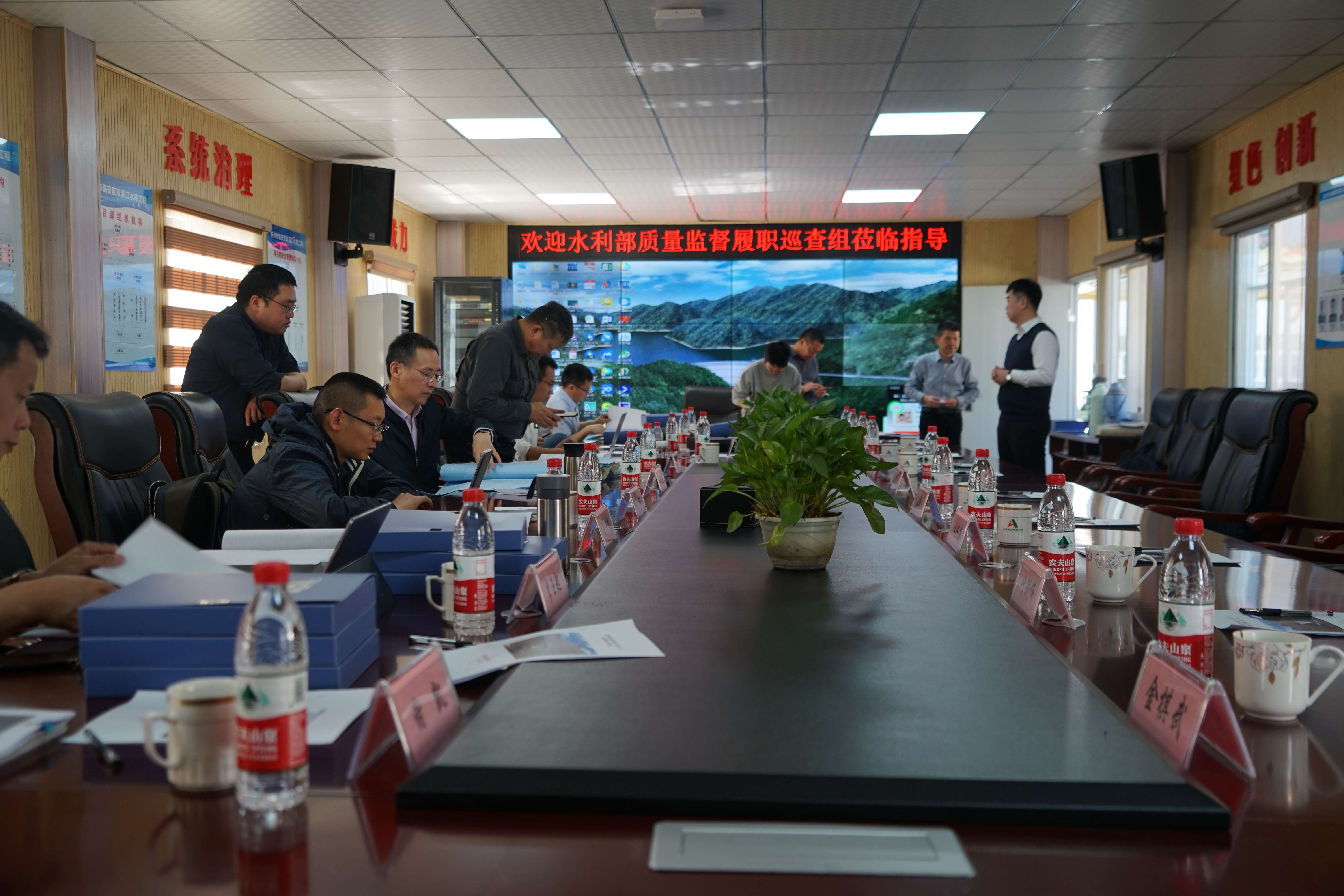 巡查组一行首先来到施工现场,听取项目总体情况汇报。随后召开座谈会,听取杭州市水利局、临安区政府、临安区水利局、工程项目法人单位工作汇报,详细查阅了市、区水利行政主管部门和双溪口水库工程参建各方质量、安全生产业内资料。督导组充分肯定了各级水利行政主管部门和各参建单位在质量、安全生产管理方面所做的工作。