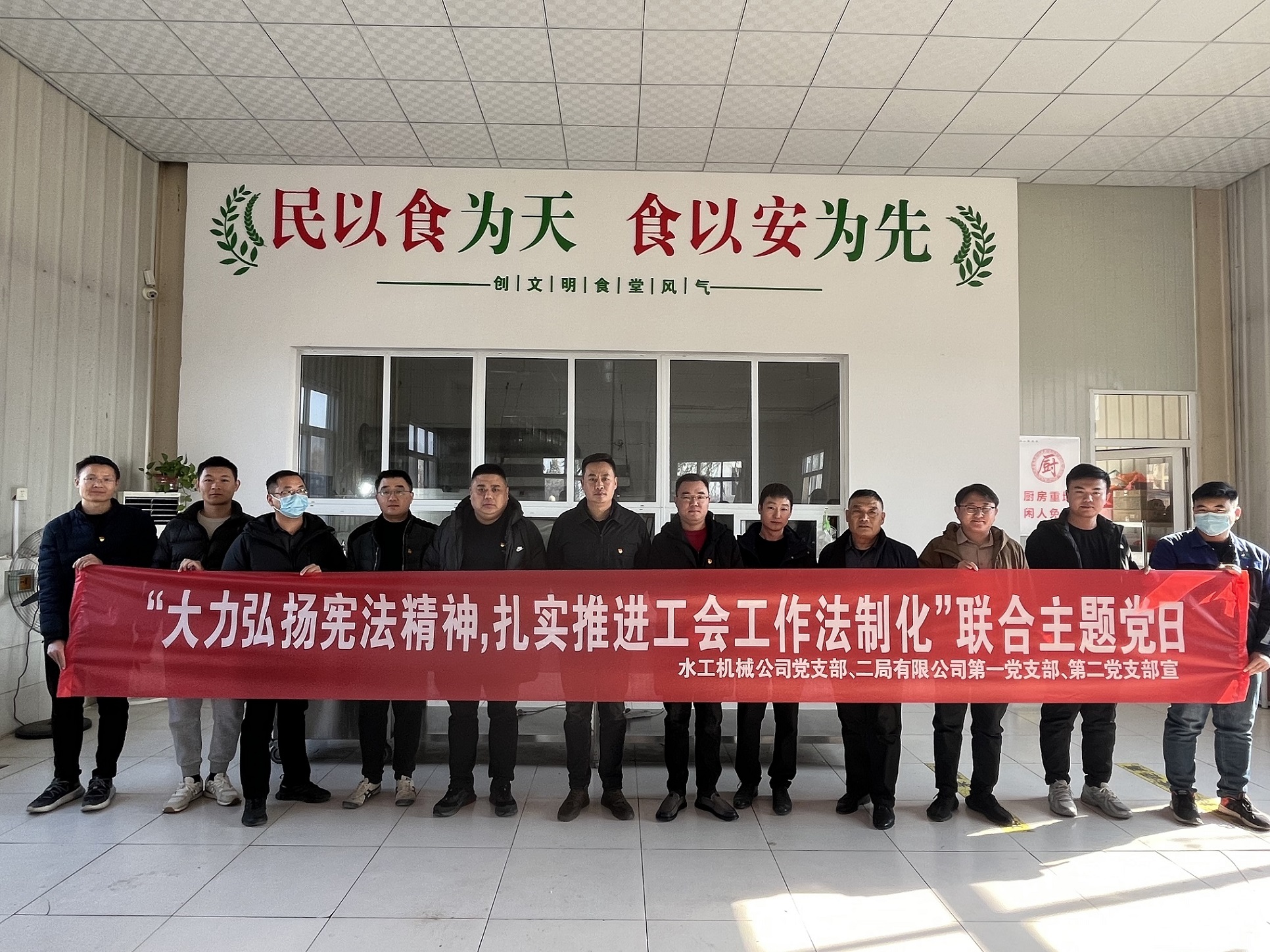 2023 年 12 月 4 日是第十个国家宪法日,为大力弘扬宪法精神,进一步营造尊法学法守法用法浓厚氛围,增强党员干部的宪法意识和党性修养。12月4日,水工机械公司党支部联合二局有限公司第一党支部、第二党支部共同开展了“大力弘扬宪法精神,扎实推进工会工作法制化”联合主题党日活动。