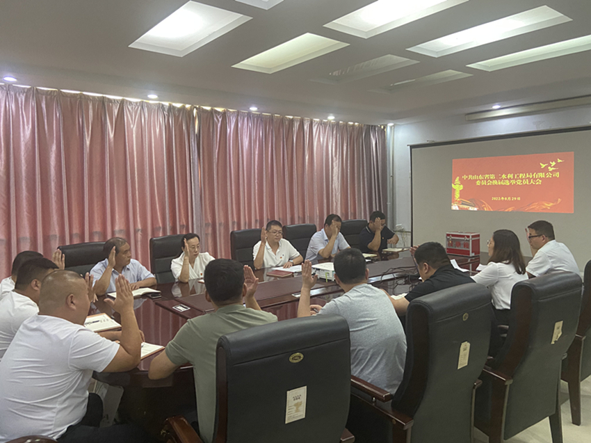 经山东betway88西汉姆联党委批准,8月29日下午,二局有限公司党委召开全体党员大会,进行党委换届选举工作。会议由党委书记、执行董事、总经理王传波主持,公司全体党员参加。