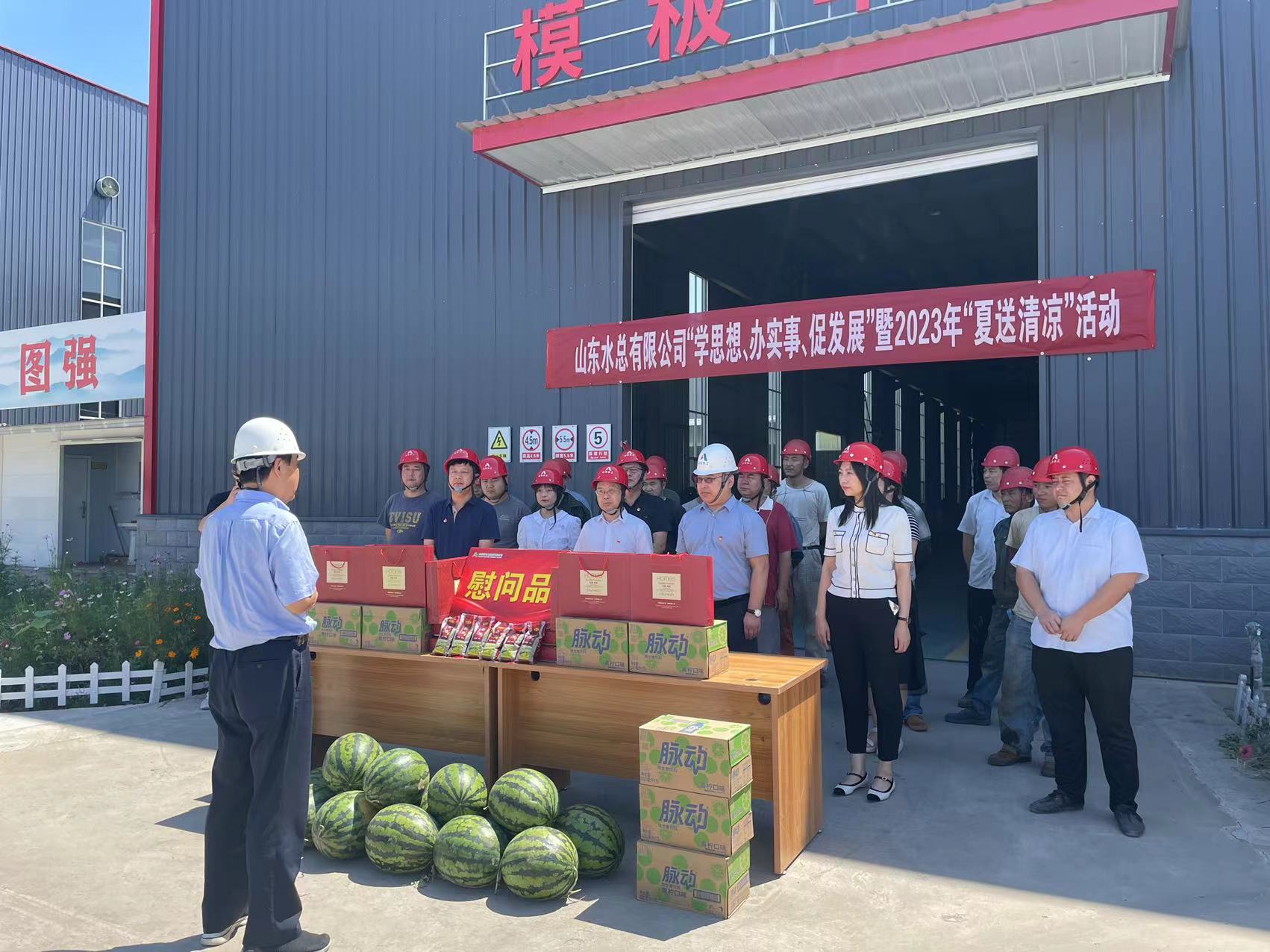 为推进学习贯彻习近平新时代中国特色社会主义思想主题教育走深走实,持续为职工群众办实事,传递公司党委、工会对一线职工的关心关爱,7月18日,山东betway88西汉姆联党委委员、纪委书记朱瑞伟一行到水工机械公司开展“学思想、办实事、促发展”暨2023年“夏送清凉”慰问活动。